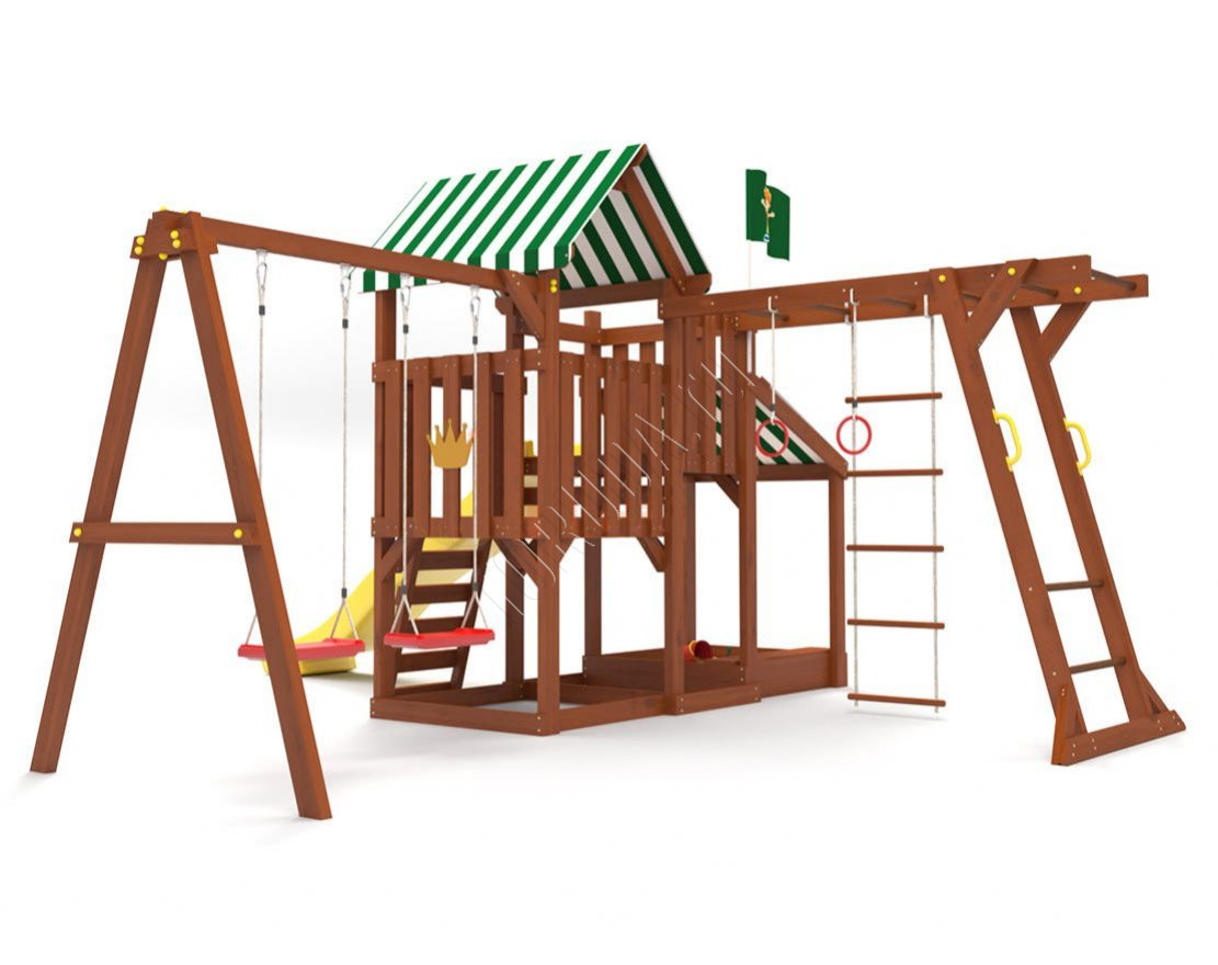Площадка Борге 4 Ультра обладает довольно широким функционалом (который по желанию можно легко расширить). Детская площадка предназначена для дачи, коттеджа.