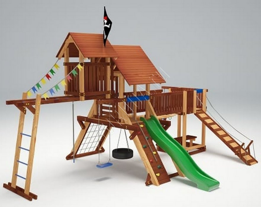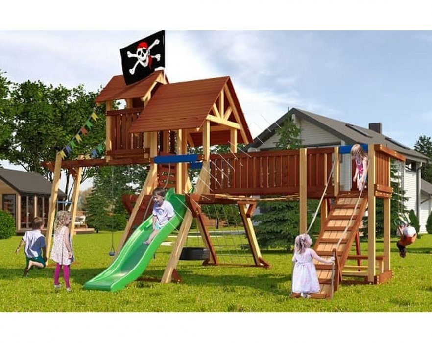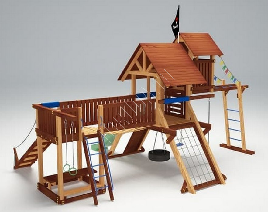 Площадка Галиот 11 обладает довольно широким функционалом (который по желанию можно легко расширить). А на качелях могут кататься даже родители! Детская площадка предназначена для дачи, коттеджа.