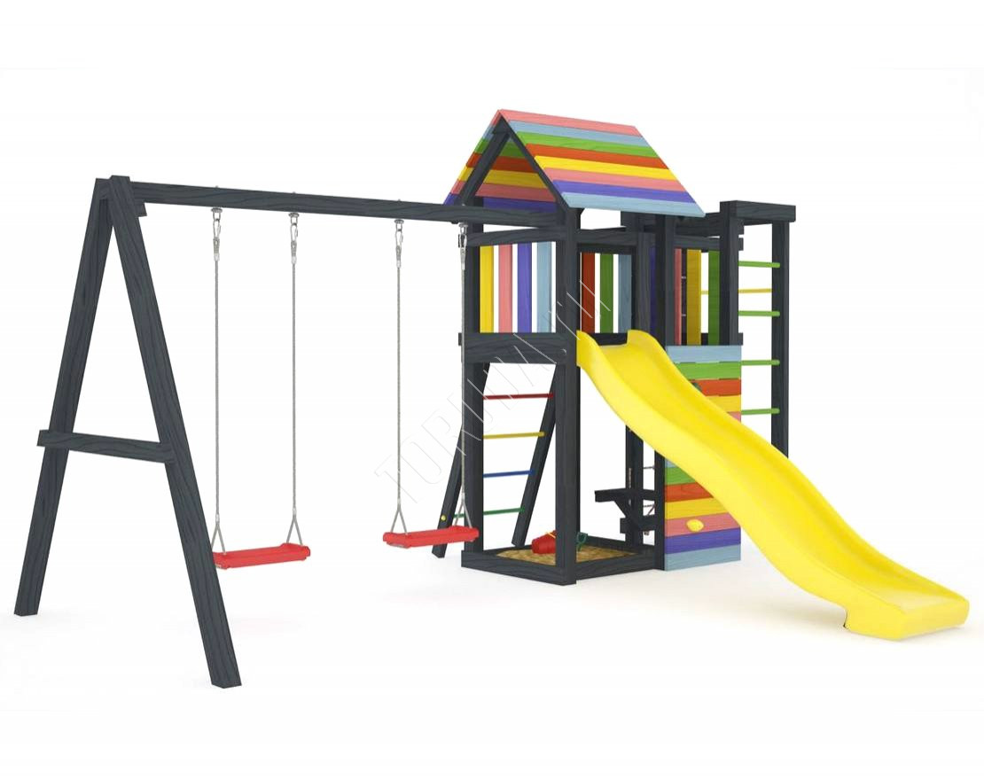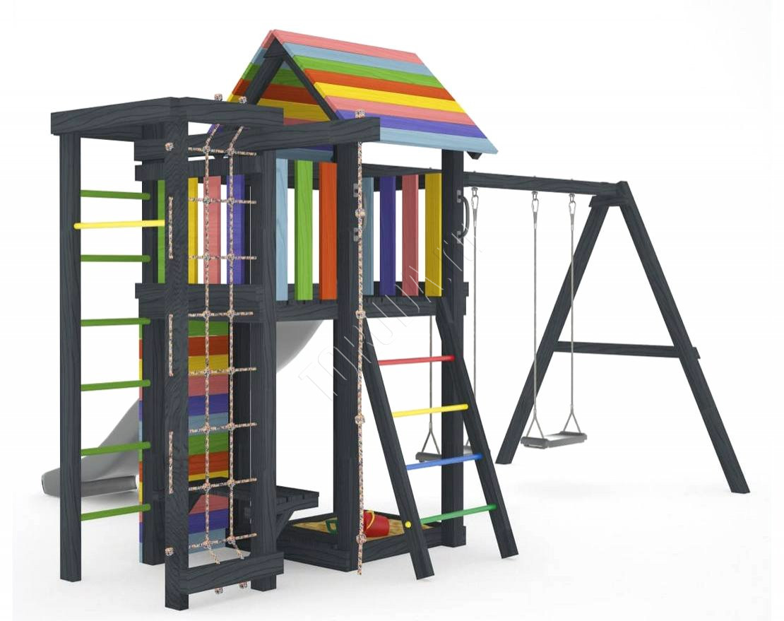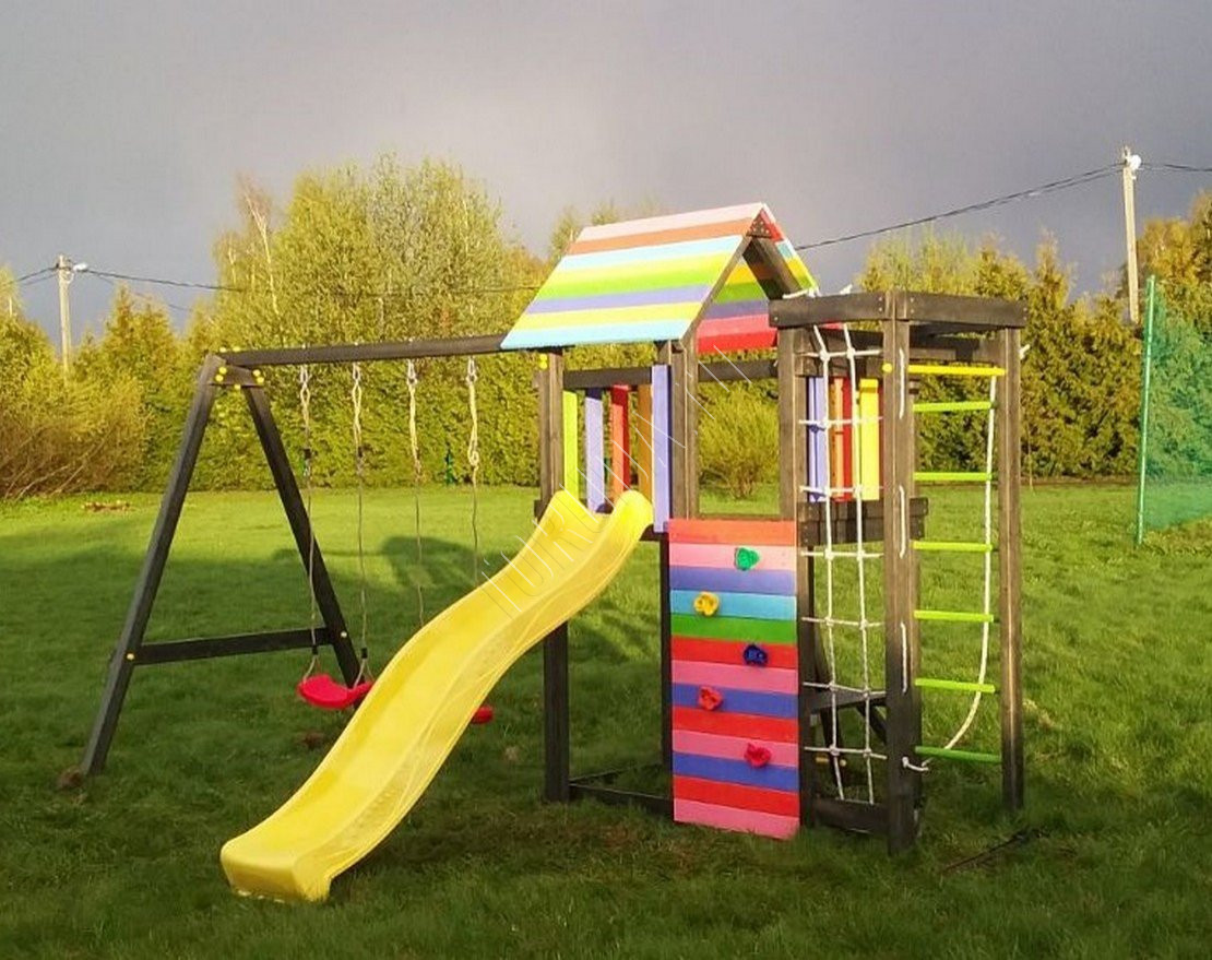 Детская площадка обладает довольно широким функционалом, предназначена для дачи, коттеджа.