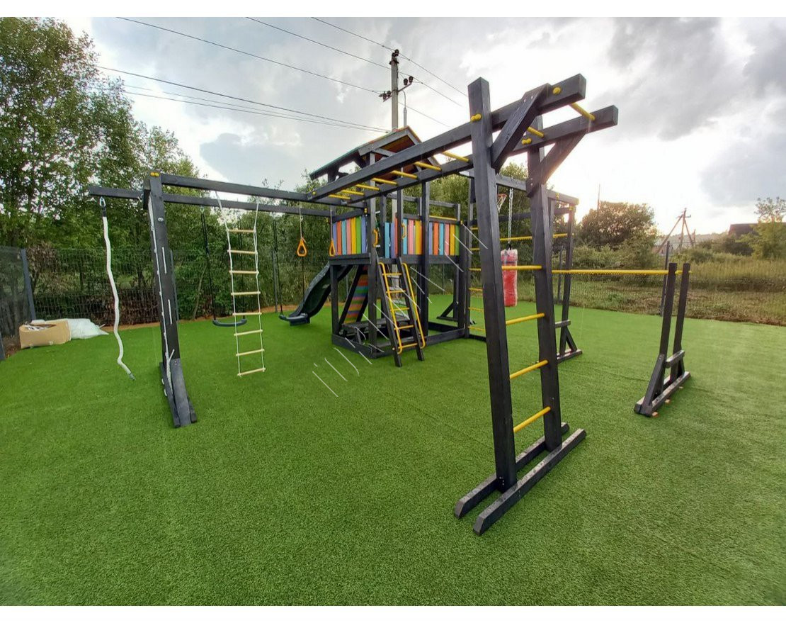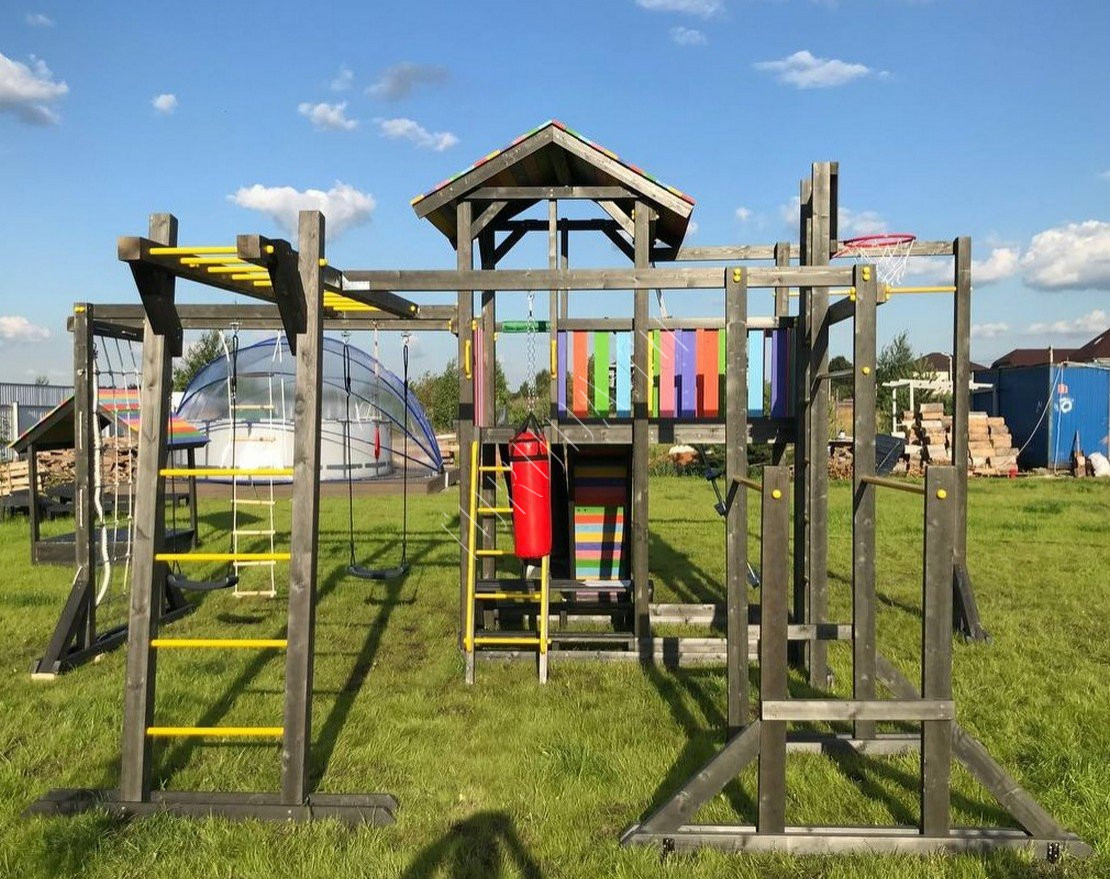 Детская площадка обладает довольно широким функционалом, предназначена для дачи, коттеджа.
