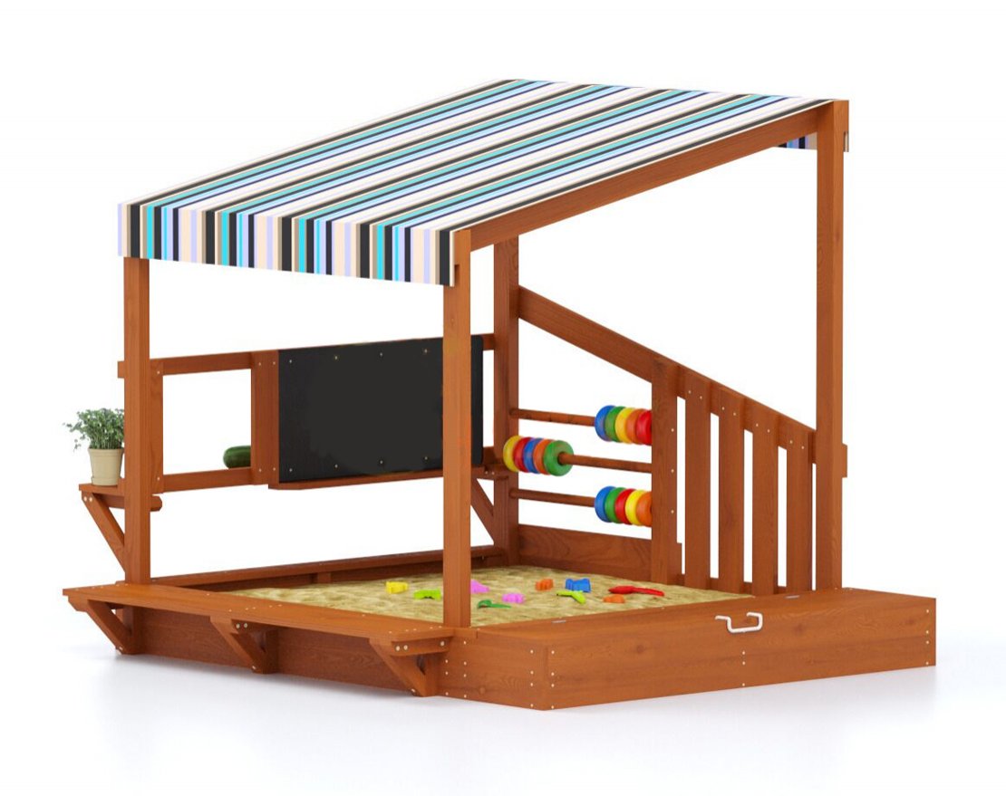 - Песочница – это отдельный элемент, который позволяет детям играть в песке и строить замки и башни. Лавочки на песочнице обеспечивают удобство и комфорт при игре.