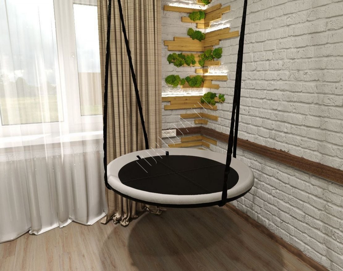 Эти качели идеально подходят как для размещения на улице, так и в помещениях. Обратная сторона полностью чёрного цвета придаёт им стильный и современный вид. Наслаждайтесь отдыхом с комфортом и безопасностью, выбирая качественные и долговечные качели для всей семьи!
