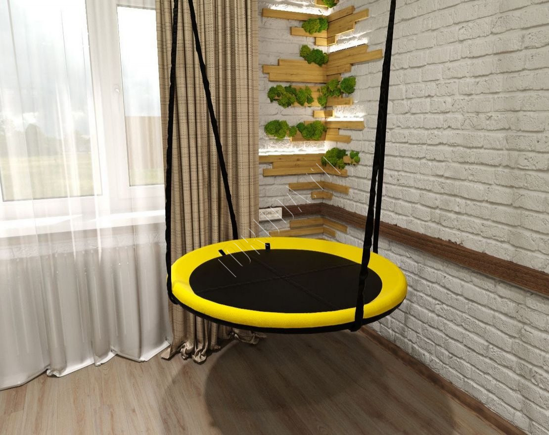 - Комфорт: каркас качелей обрамлён мягким защитным бампером с амортизирующими свойствами, что делает использование качелей более комфортным и безопасным.