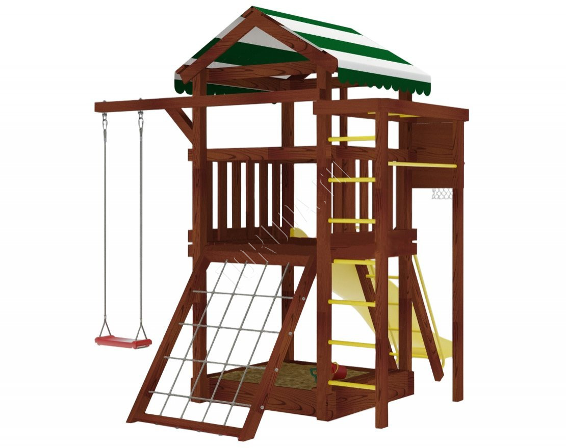 - Удобство для детей и родителей: конструкция продумана до мелочей: игровая башня с крышей защищает от солнца и осадков, песочница с лавочкой позволяет детям играть с комфортом, а баскетбольное кольцо со щитом добавляет разнообразие в игры.