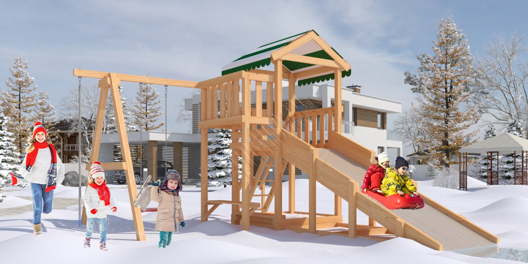 Всесезонная модель Гарда 1 обладает натуральным цветом дерева без покрытия и модульной конструкцией. Одновременно на площадке могут играть несколько детей. Основа конструкции – игровая башня с балкончиком и яркой пластиковой горкой.