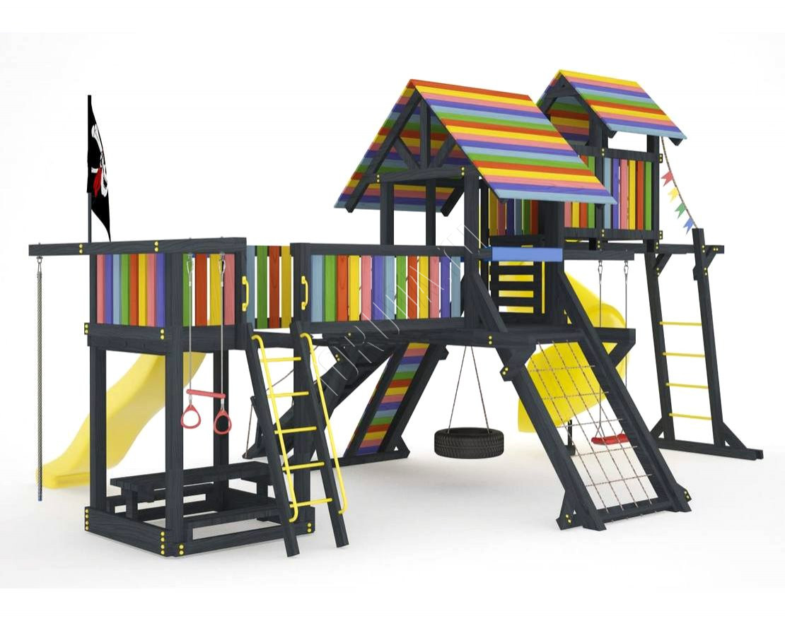 Детская площадка обладает довольно широким функционалом, предназначена для дачи, коттеджа.