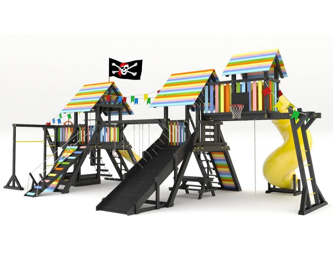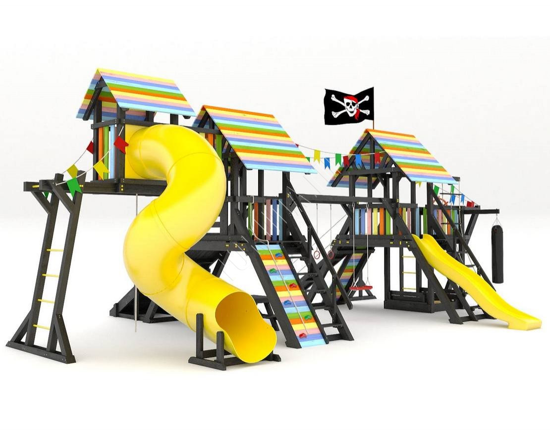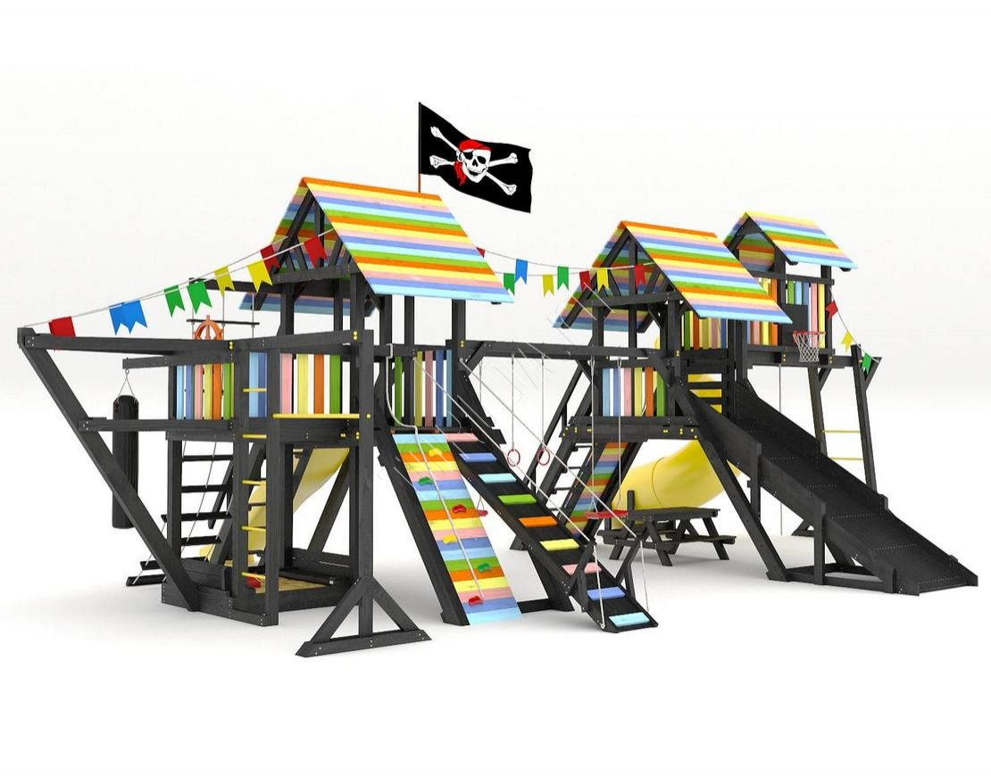 Детская площадка обладает довольно широким функционалом, предназначена для дачи, коттеджа.
