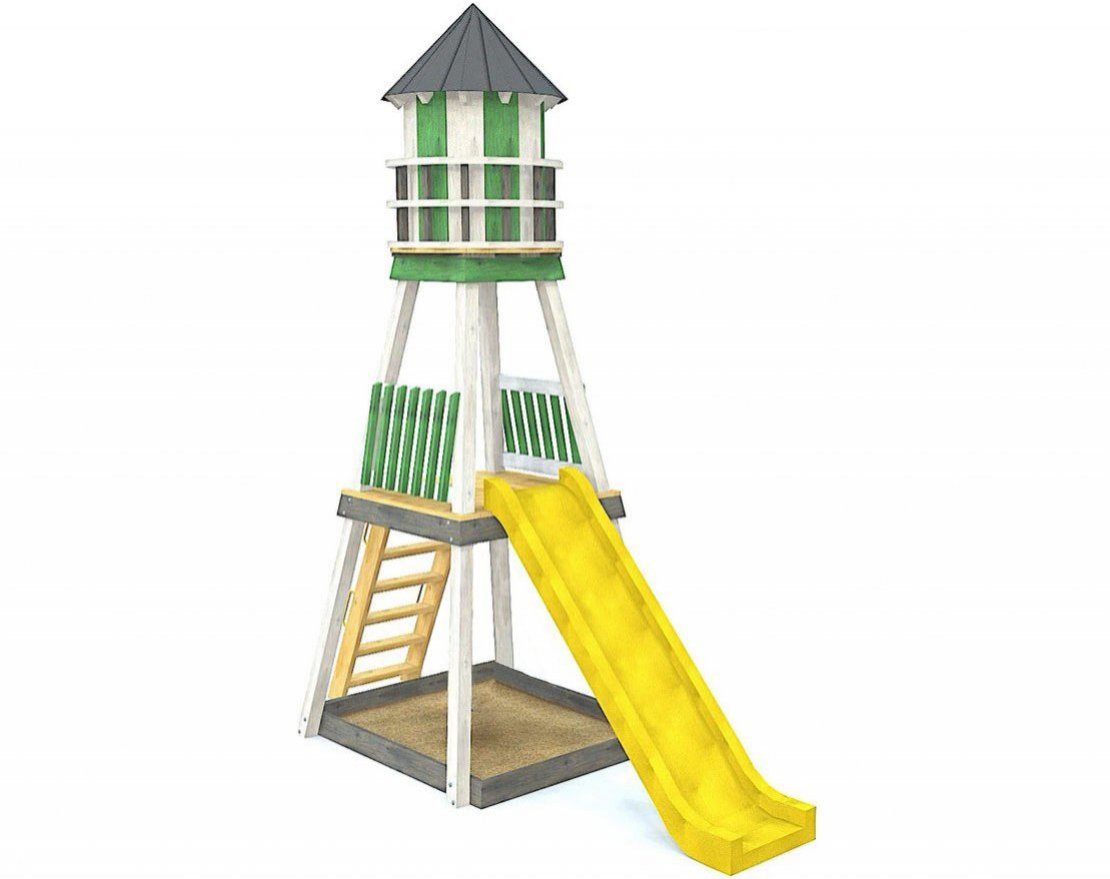 Игровой комплекс Водонапорная башня имеет компактное основание, а высота башни превышает 4 метра.