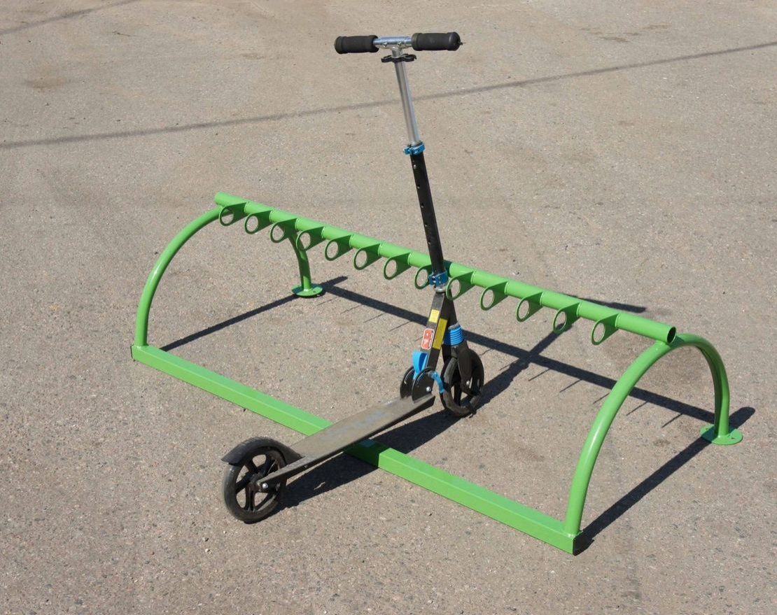 Парковка для самокатов устанавливается возле зданий общественного пользования, образовательных учреждений, в парках, на детских площадках и так далее. Особенности изделия: