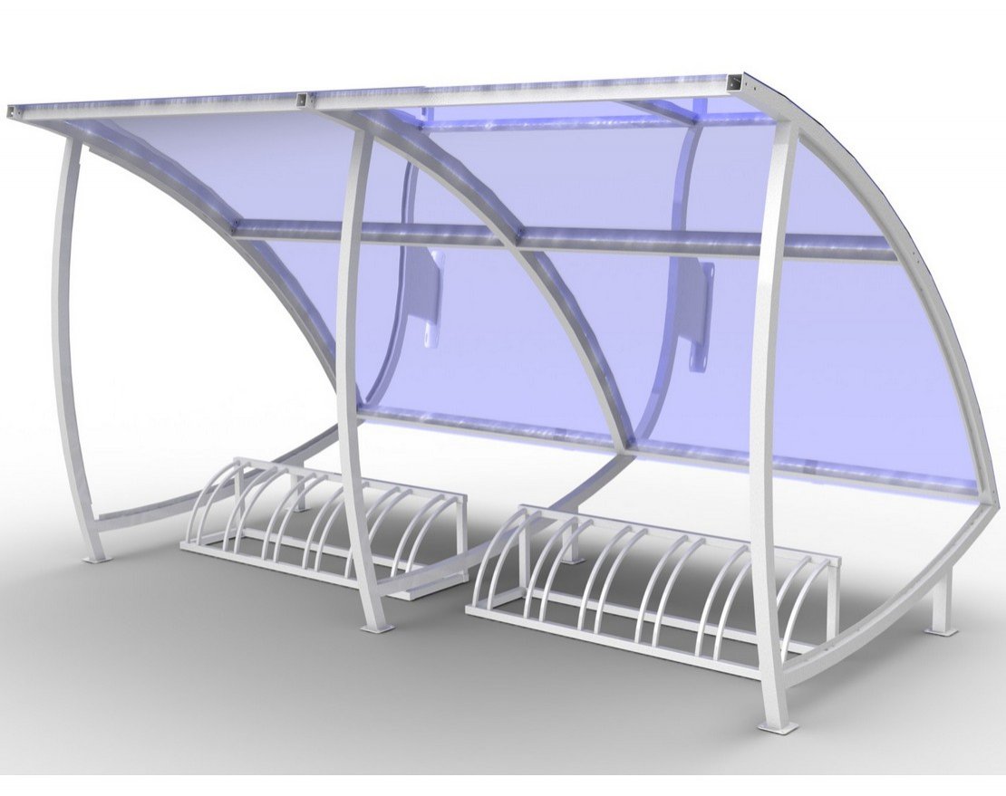 Велопарковка с навесом "Сиэтл" устанавливается в парках, зонах отдыха, у торговых центров, офисных зданий и других городских локаций. Обеспечивает упорядоченное размещение как велотранспорта, так и самокатов, защищая от осадков и ультрафиолета.